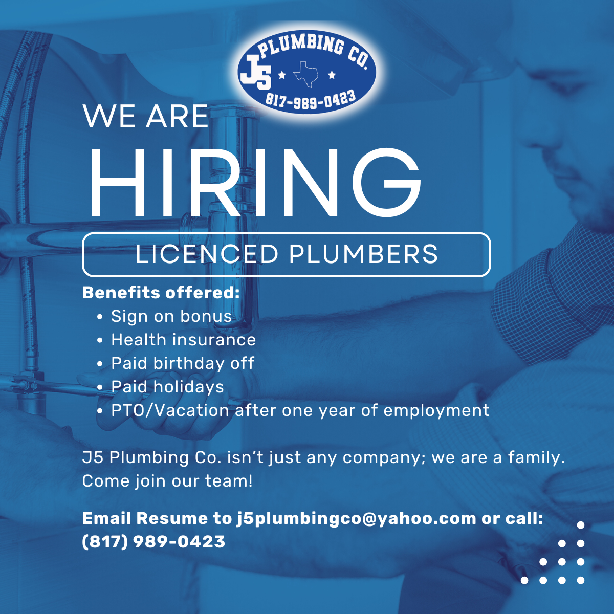 With 25+ years of experience, J5 Plumbing Co is a small, local plumbing company serving Benbrook and the surrounding area!